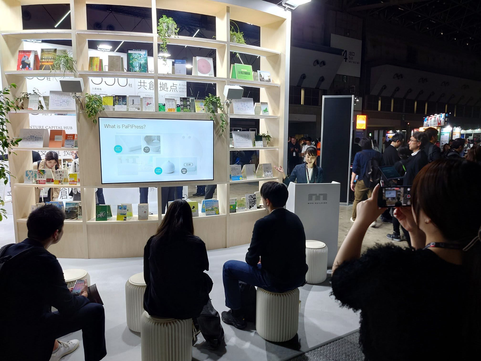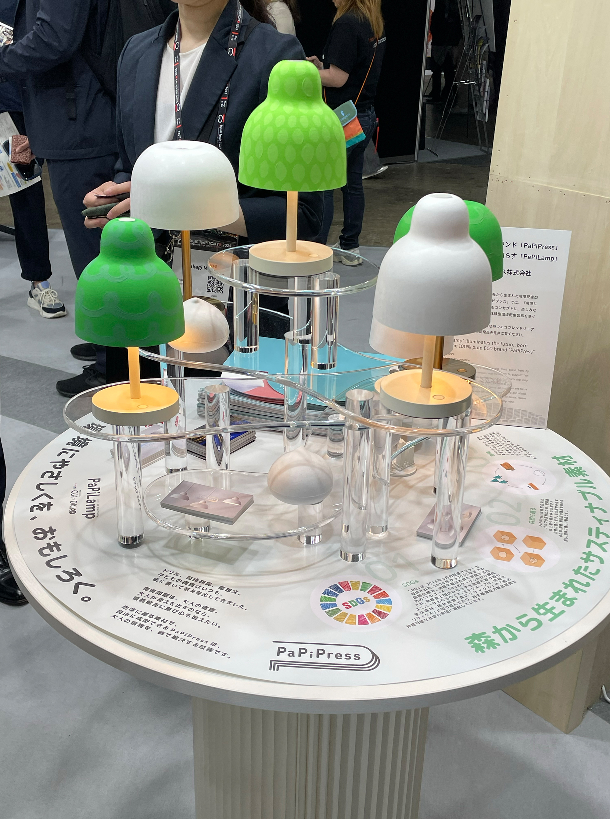 PaPiPressの取り組みが「SusHi Tech TOKYO 2025」森ビル(株)様ブース内にて紹介され、PaPiLamp(パピランプ)と泡型パッケージが展示されました。